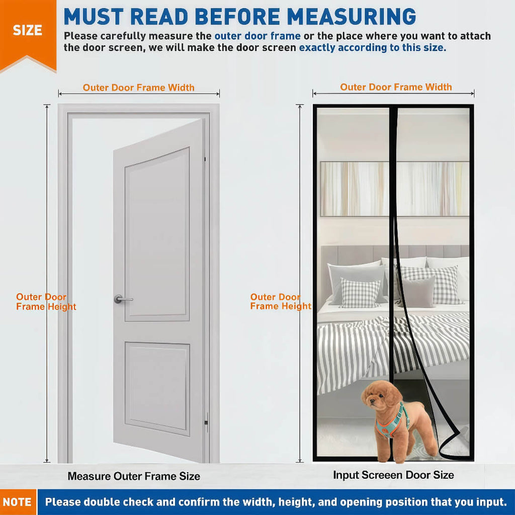 • 2. Since the screen door is customized and cannot be recycled, we do not accept returns exchanges except for quality issues. Therefore, before placing an order, please double-check if the size is appropriate.